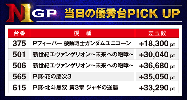 機種全体が大きく盛り上がり、トータルで+39,000ptを超える結果を残した。
