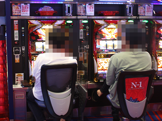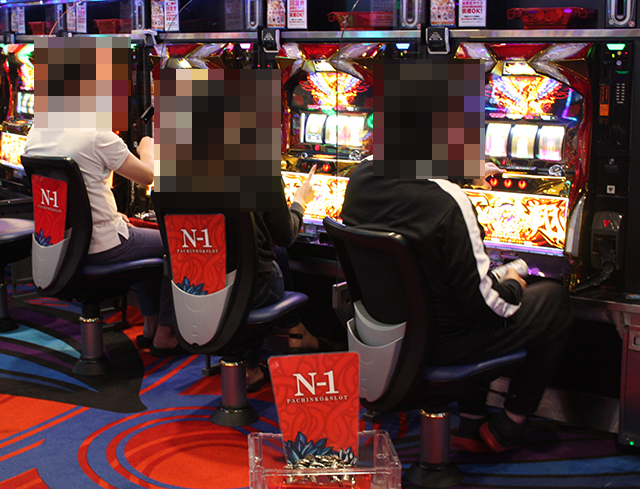 パチスロでは沖スロを支持しているプレイヤーが多く、随所が楽しそうな雰囲気に包まれていた。