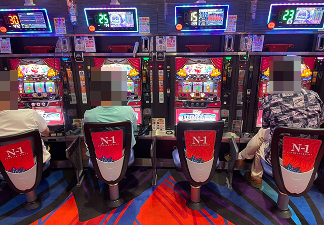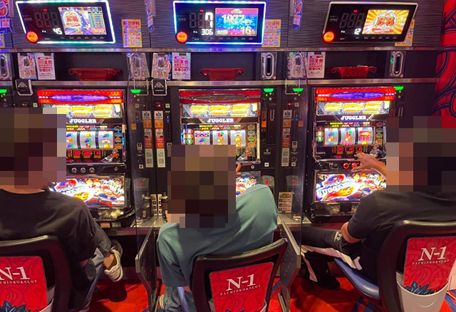 設置されている3機種すべてに遊技を楽しむ姿があり、伝わってくる盛り上がりは大きい。