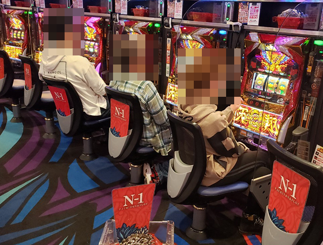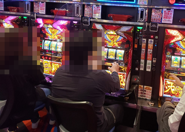 14時半過ぎにパチスロコーナーをみると、さまざまな機種が活況となっていた。