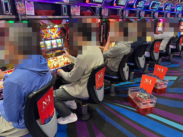 パチスロの様子をうかがうと、沖スロを中心に活気のある光景が広がっていた。