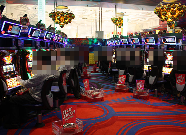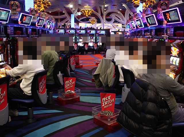 低貸し玉コーナーも含め、合計で100台以上の沖スロが設置されているホールだ。