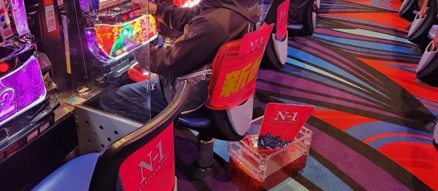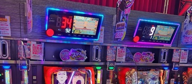 同店では設置数上位の『スマスロ北斗の拳』『スマスロバジリスク~甲賀忍法帖~絆2 天膳 BLACK EDITION』では頭上に赤い数字が列挙し、『パチスロ からくりサーカス』を始めとした少設置機種もドル箱表示が目立っていた。