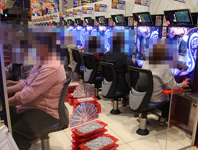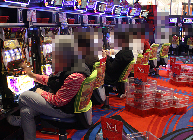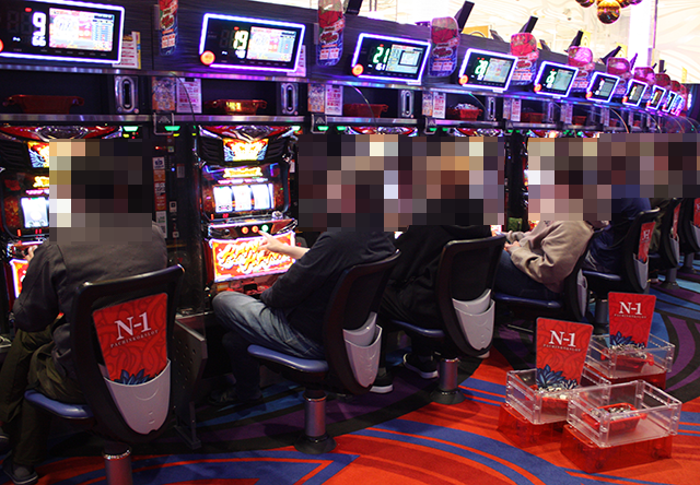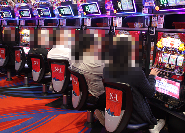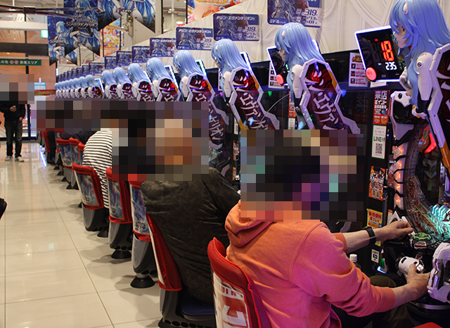 パチンコの「ぱちんこ シン・エヴァンゲリオン Type レイ」も8割以上が埋まっており、シマ内は活況。