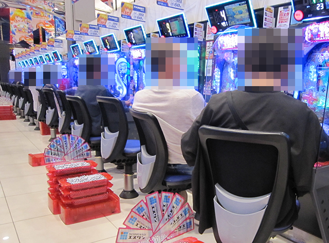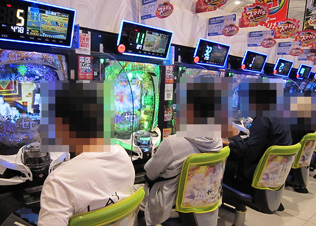 取材時に7箱以上や6箱以上、5箱以上の持ち玉を使って遊技をおこなう姿を発見。