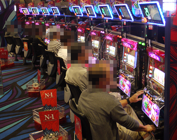 20円パチスロをみると、イキイキと遊技をおこなうプレイヤーが多数。