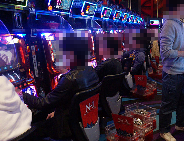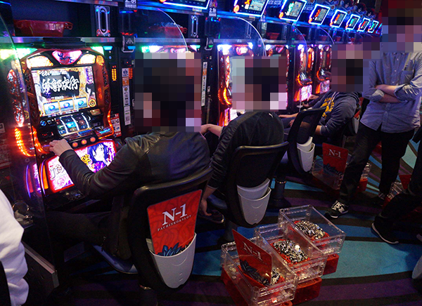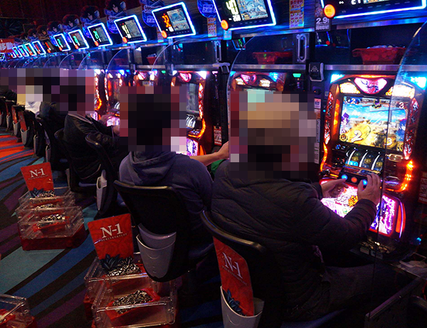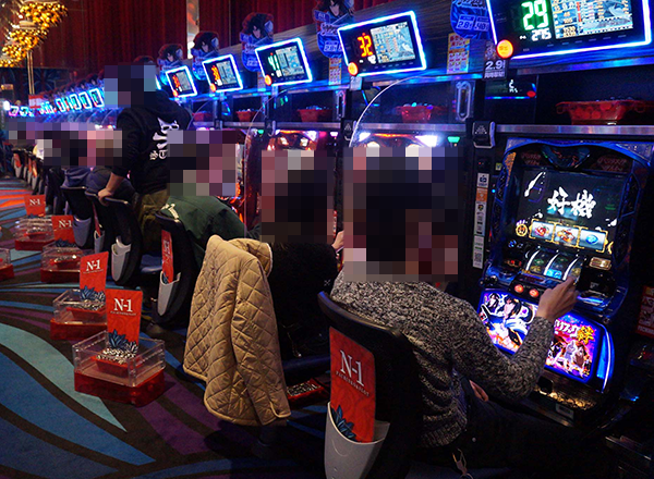 理想的ともいえる展開で遊技をおこなっている姿をいたるところで確認。イキイキとした表情でレバーを叩く様子からは、充実した時間を過ごせていることが伝わってきた。