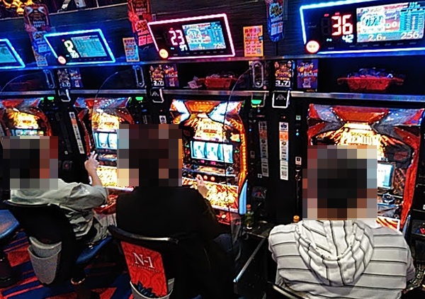 滞在時は遊技中のプレイヤーが席を離れる場面もなく、『プレミアムハナハナ‐30』はつねに盛況!