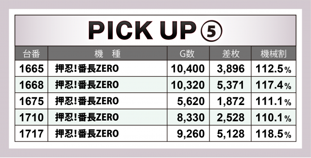 『番長ZERO』5台の平均差枚数が+3千8百枚弱!