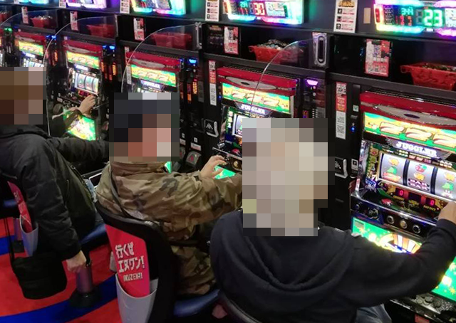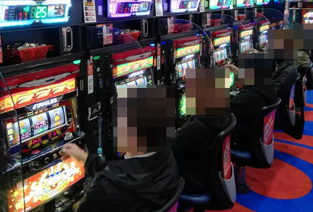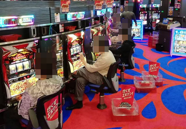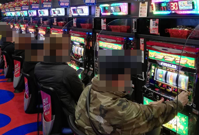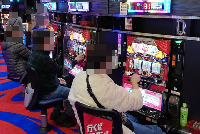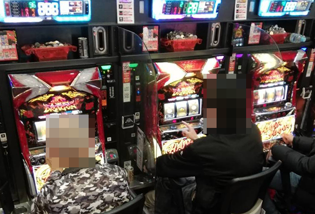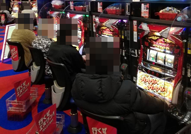店内を進んでいくと、パチスロとパチンコの両方で活躍をしているプレイヤーの姿を目にした。