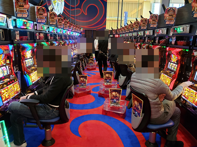 「ハナハナホウオウ~天翔~-30」をはじめとした沖スロが、パチスロ全体の3割以上を占めているホールだ。