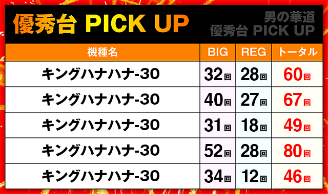 「キングハナハナ-30」の多くの台が好調な記録を残した。