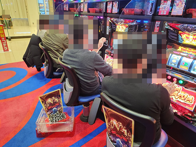 「エヌワン亀貝インター店」はたくさんの笑顔で彩られ、パチンコもパチスロも活気づいていた。
