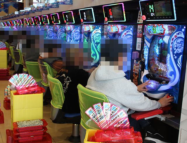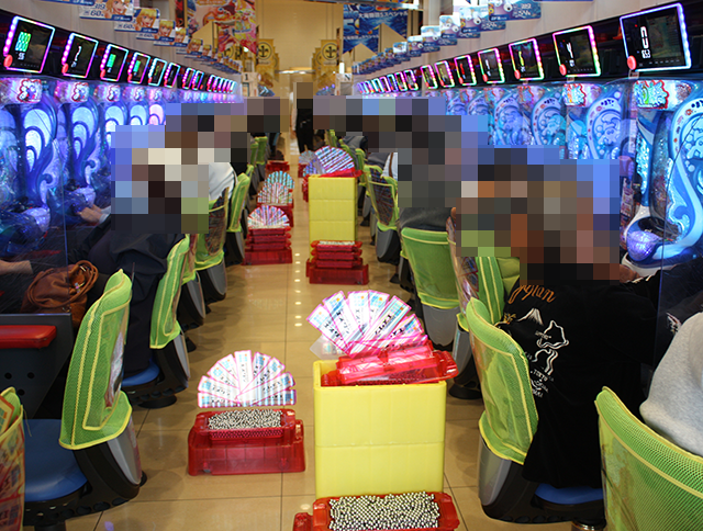 4箱以上や5箱以上の持ち玉を使い、笑顔で遊技をおこなっているプレイヤーがいた。
