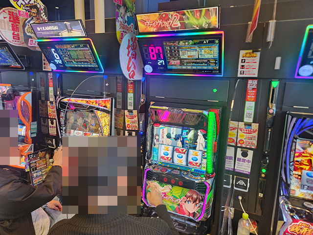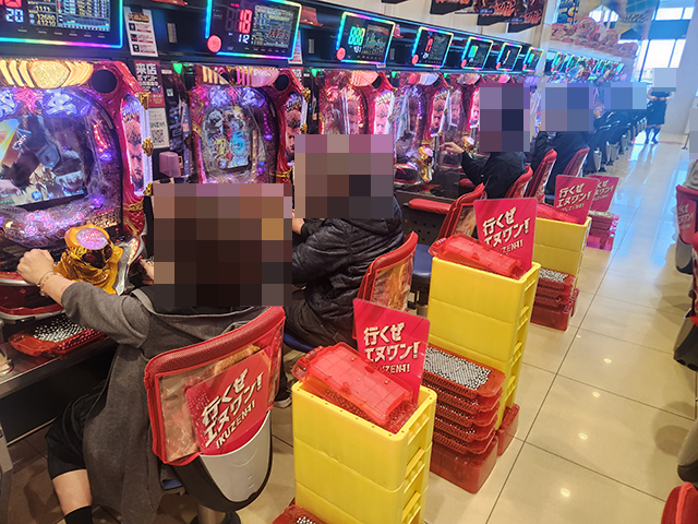取材時のパチンコは、「P北斗の拳 暴凶星」でプレイヤーが活躍をしており、複数台が20,000ptを超えていた。