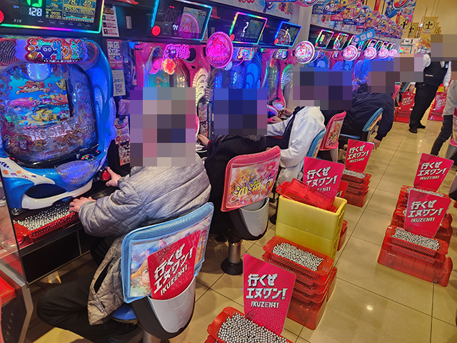 店内をまわっていると、パチンコとパチスロの両方からエールのような盛り上がりが感じられた。