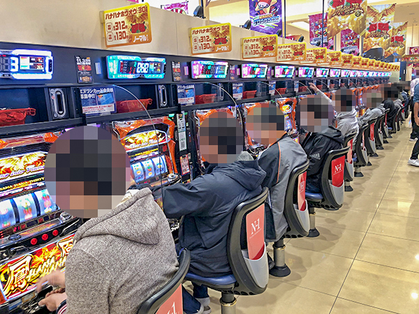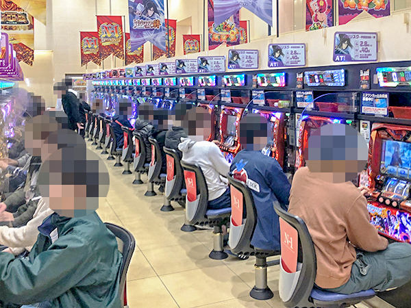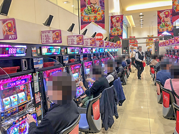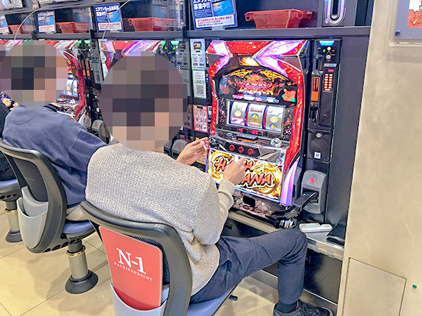 「ハナハナ鳳凰-30」や「ツインドラゴンハナハナ‐30」のにぎわいも大きい。機種性能を存分に発揮するプレイヤーが目立っていた。