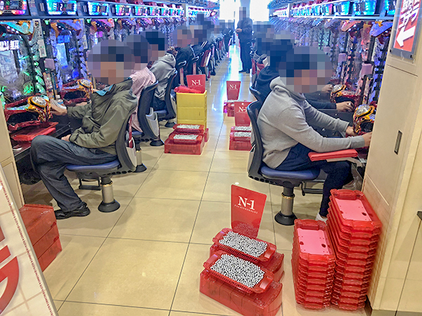 1円・0.5円パチンコの支持も厚い。思う存分楽しむプレイヤーの姿が至る所で見受けられた。
