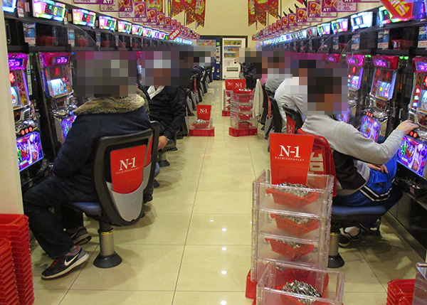 訪れた時間帯には、色鮮やかな電飾でホール全体が美しくライトアップされていた。駐車場にたくさんの車がとめられていたことも印象的で、足を踏み入れる前から大勢のプレイヤーでにぎわうホール内の様子がイメージできた。