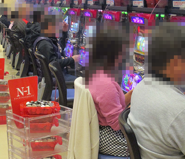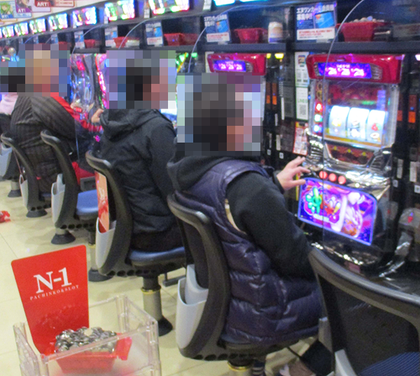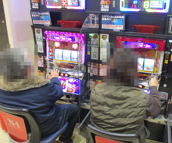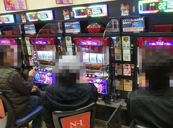 パチスロコーナーの様子をうかがうと、多くの場所でプレイヤーたちが華麗なパフォーマンスを披露。