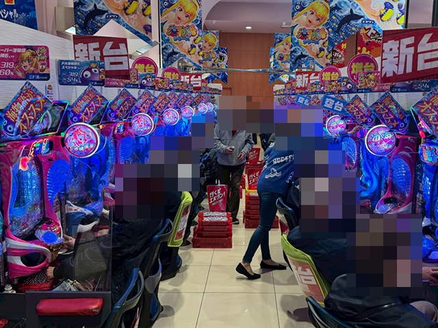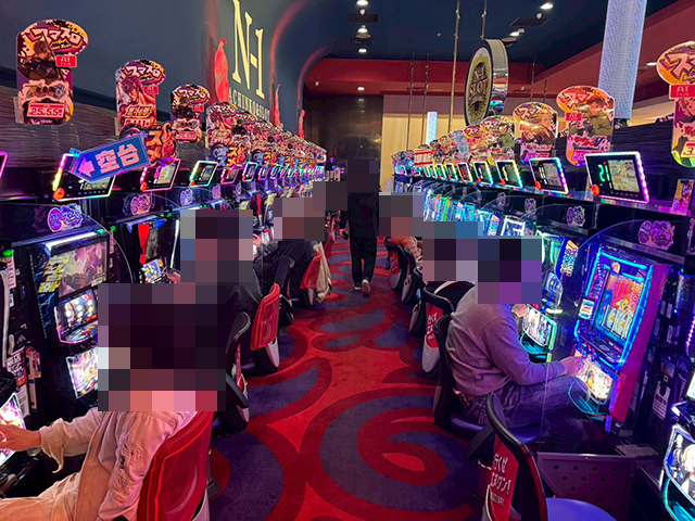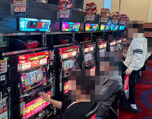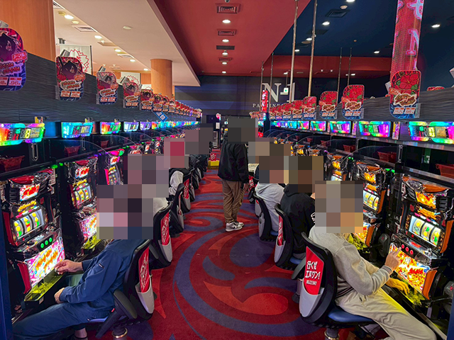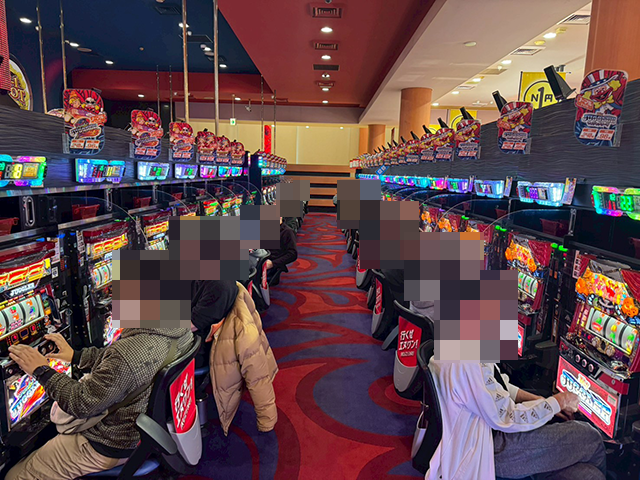 「スマスロ北斗の拳」や「スマスロモンキーターンV」なども支持され、明るい表情で遊技をおこなう姿が並んでいた。
