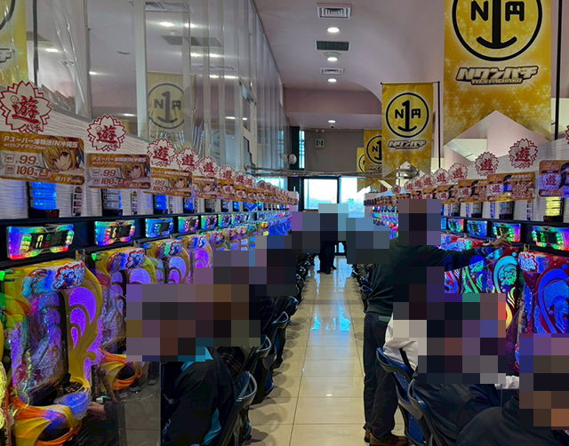 11月29日の店内は、パチンコとパチスロの両方がにぎわっていた。