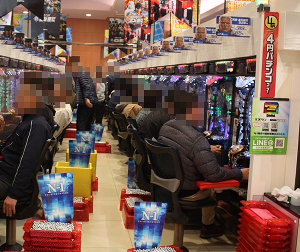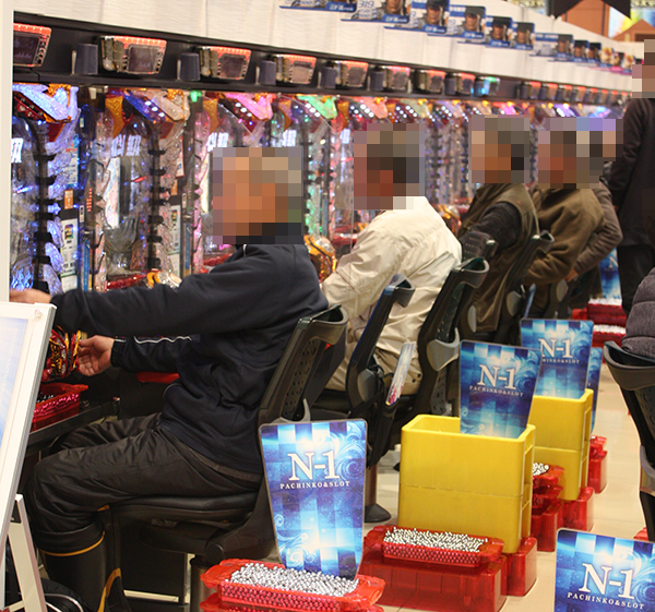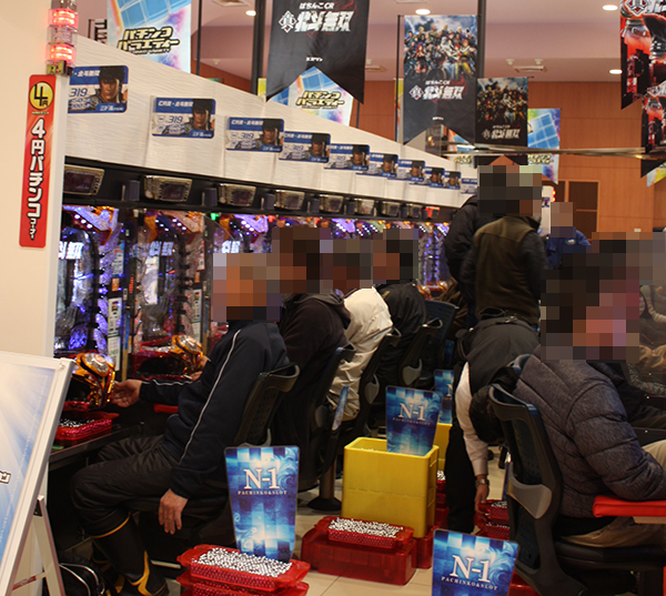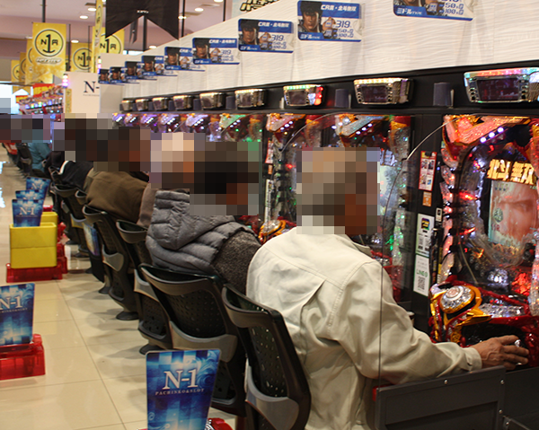 「ぱちんこCR真・北斗無双」を中心に、たくさんの機種が盛り上がっていた「エヌワン巻店」。うれしそうなプレイヤーを各所で目にした。