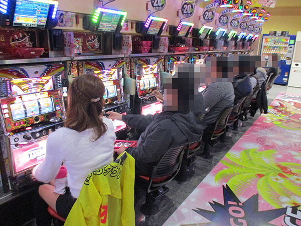 パチスロコーナーでは、あやちゃんも実戦中のジャグラーシリーズと「沖ドキ!」が大盛況。