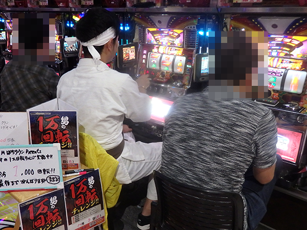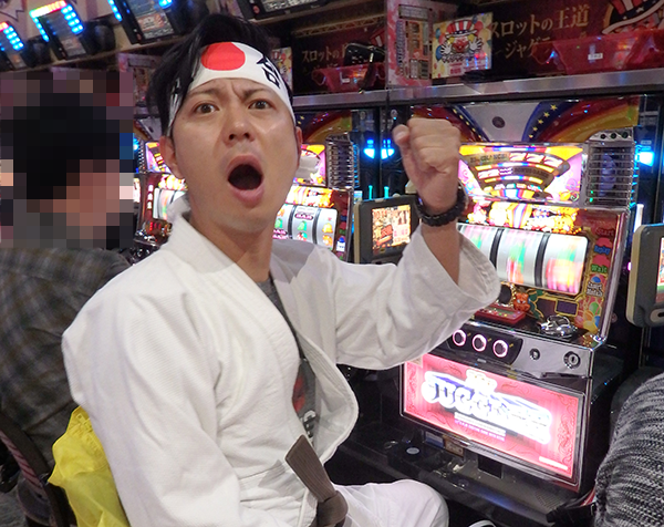 ハチマキに書かれた文字通り、気合い十分といった表情でレバーを叩いていた。