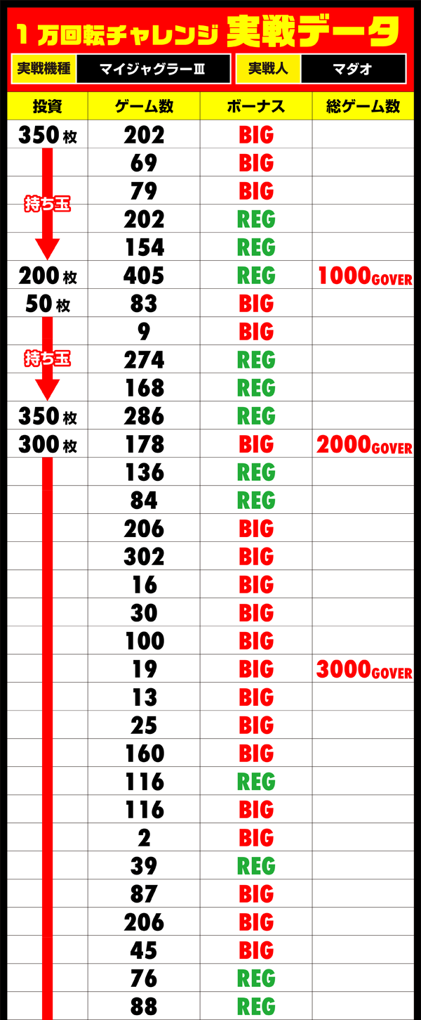 チャレンジと出玉の両方で優秀な結果を残すことができ、マダオ本人も満足感を得られたことだろう。