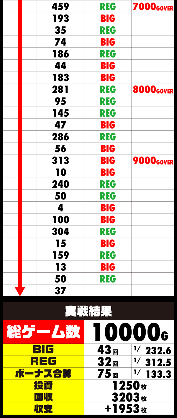 18時頃までに6700Gを消化すると、そのままの勢いで21時頃には9000Gを突破し、1万回転を完全に射程圏内へと捉えた。
