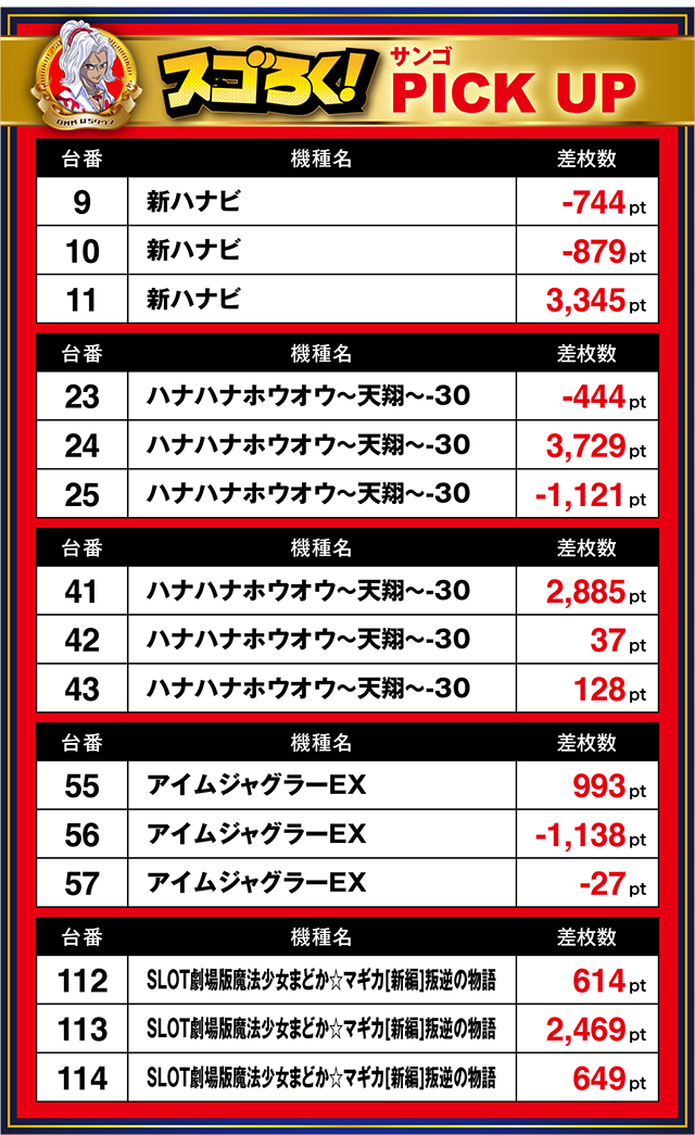 プラス台が3台並んだり、3,000ptを超えるデータがあったりと、結果もナイスだったぜ。
