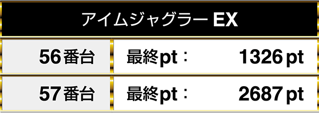 最終的には56番台が1326pt、57番台は2687ptを記録!!