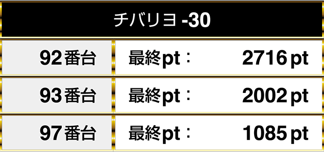 『パチスロ甲鉄城のカバネリ』の199番台は2716ptでこの日を終えていた。