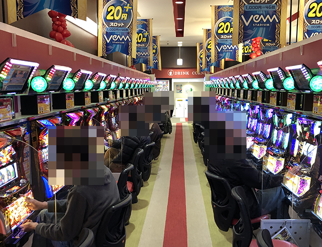 パチンコとパチスロの両方に各台計数機が設置され、多くのプレイヤーが集まるシマでも、のびのびと遊技をおこなえそうな空間となっている。