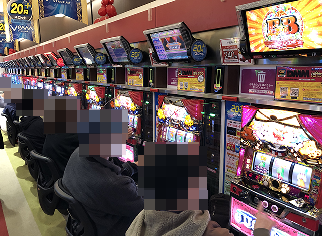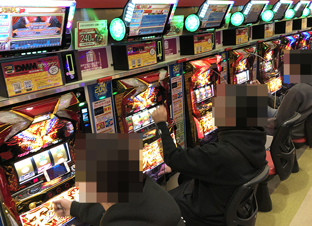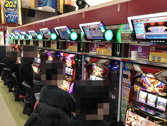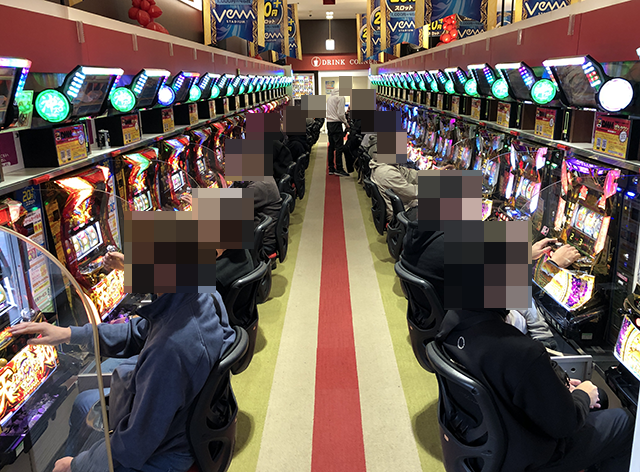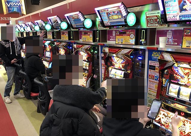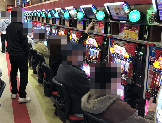 ホール内を進んでいくと、パチンコとパチスロの両方で明るい笑顔がみられた。