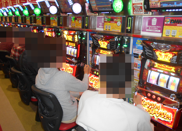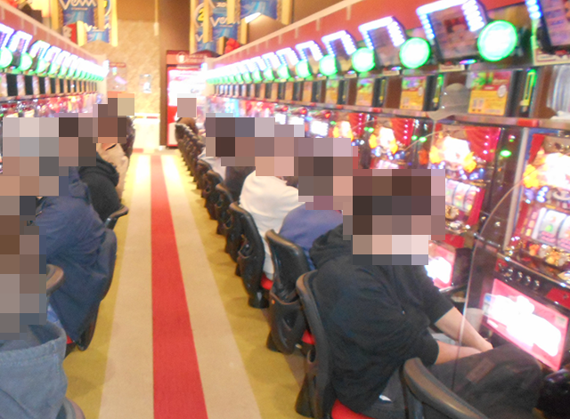 設置台数はホールで最多の18台であり、7割ほどが埋まっていた。