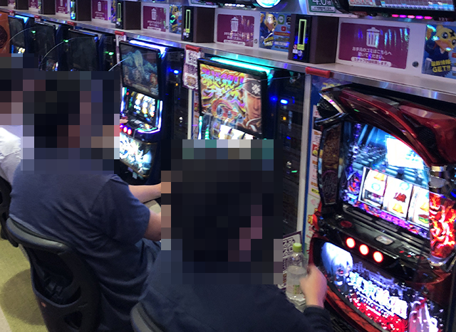 パチスロをみてみると、「L 東京喰種」の稼働率が高く、プレイヤーが笑顔で遊技中。