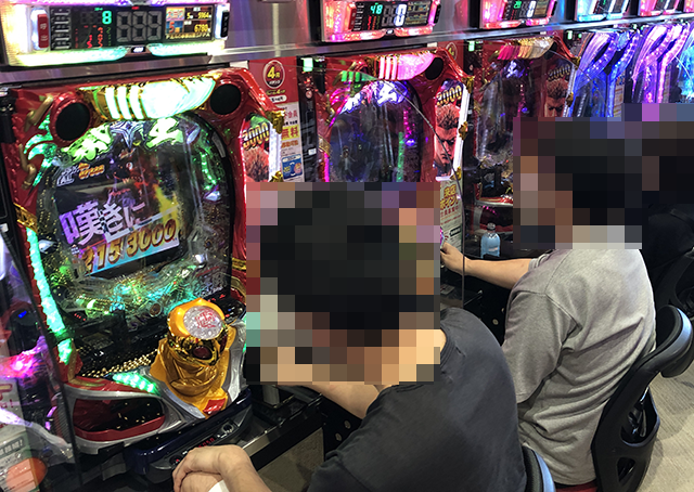 「P北斗の拳 暴凶星」で遊技をおこなっているプレイヤーもうれしそうな様子。