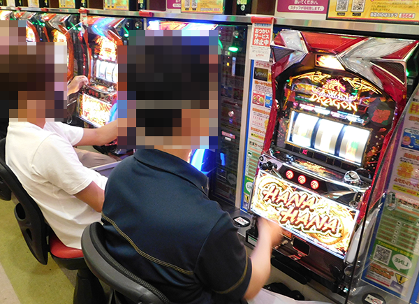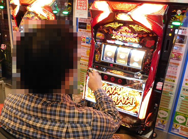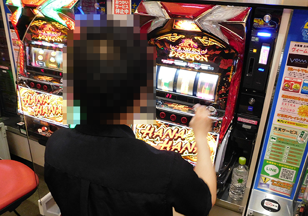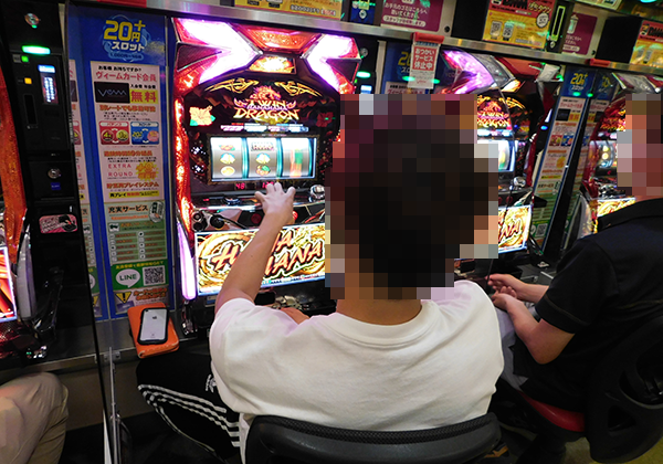 なかでも、『ツインドラゴンハナハナ‐30』で遊技をおこなうプレイヤーのパフォーマンスに興味をひかれた。