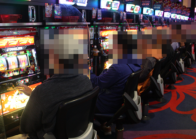 「アイムジャグラーEX」に空き台はなく、楽しげなプレイヤーがズラリと並んでいた。