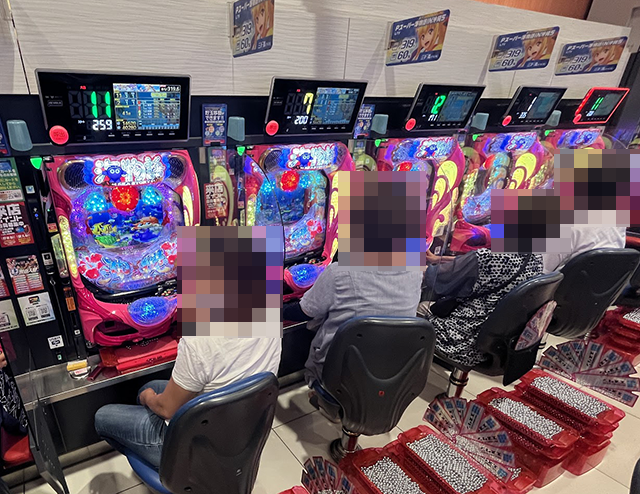 笑みを浮かべているプレイヤーが並んでおり、複数台で2箱以上の持ち玉を確認した。