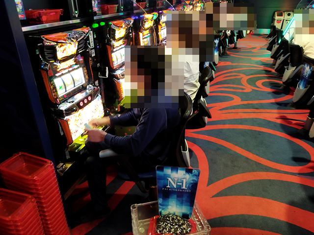 16時頃には7名が座っており、2箱以上や1箱以上の持ち玉を確認した。