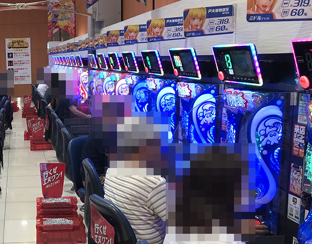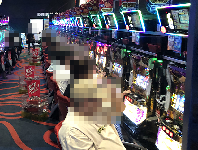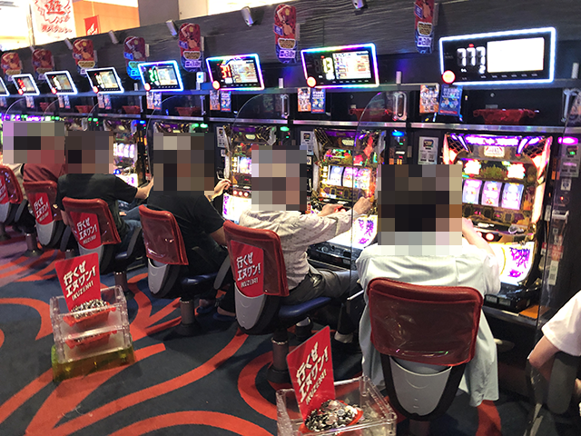 満席となるほどに人気を集めており、2箱以上の持ち玉を使って遊技を楽しんでいるプレイヤーがいた。