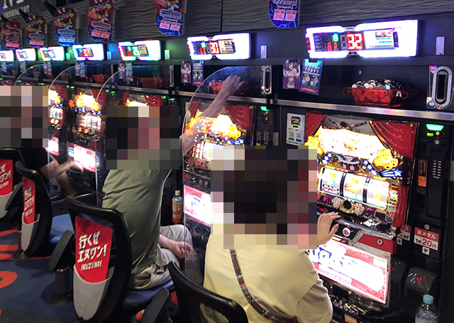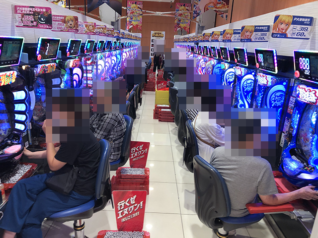プレイヤーたちは笑顔をみせ、1箱以上や2箱以上の持ち玉を使って遊技をおこなっていた。