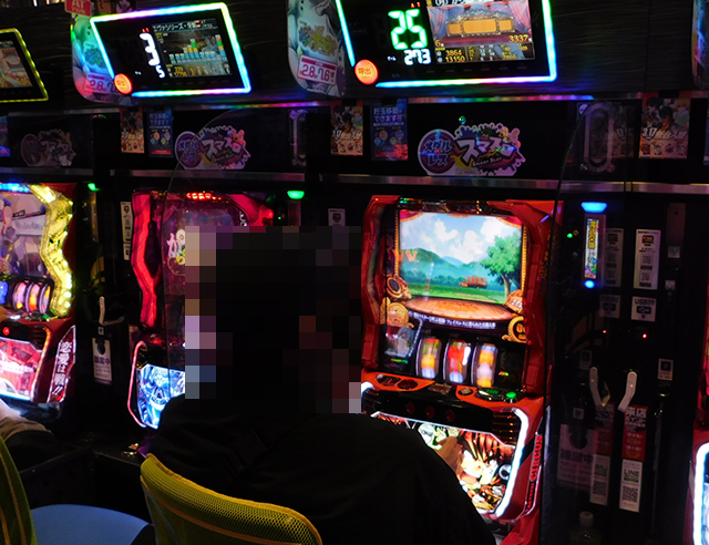 「Pスーパー海物語 IN 沖縄5」などに、持ち玉を使い、うれしそうに遊技をおこなっている姿があった。