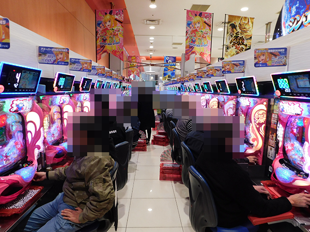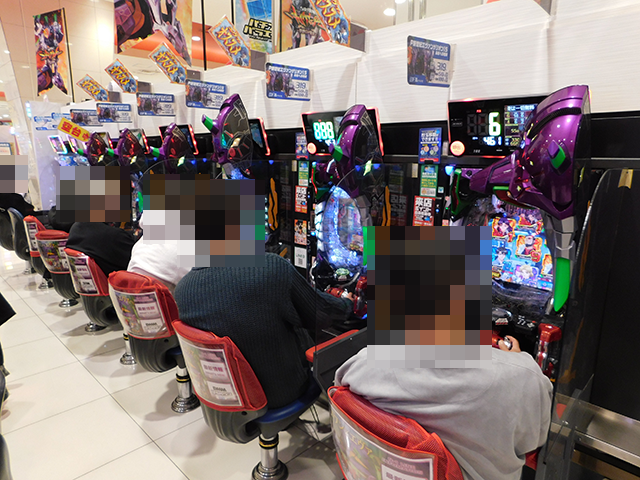 パチンコをみてみると、「ぱちんこ シン・エヴァンゲリオン Type レイ」に笑みを浮かべているプレイヤーが並んでおり、盛り上がりが感じられた。