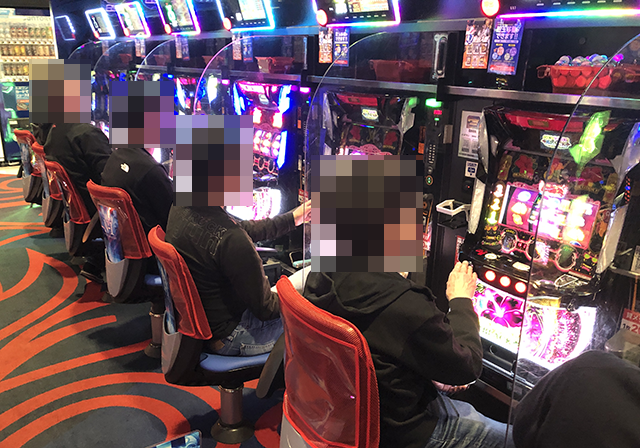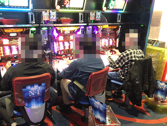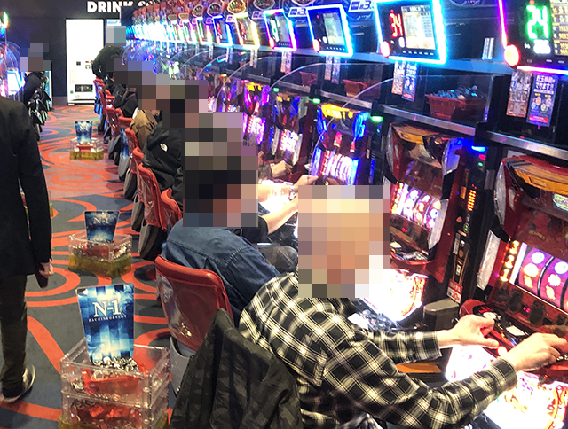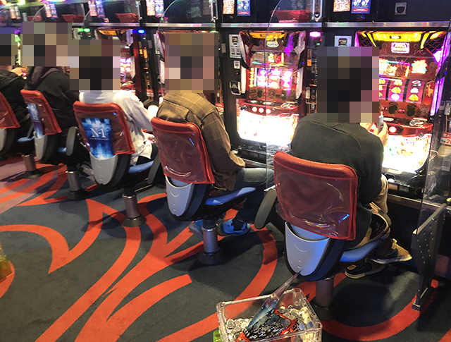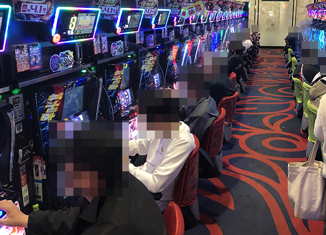 持ち玉遊技となっている楽しそうなプレイヤーが並んでいた。