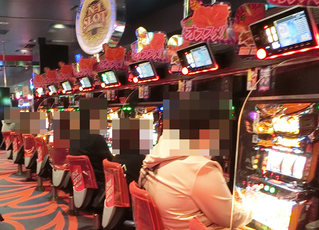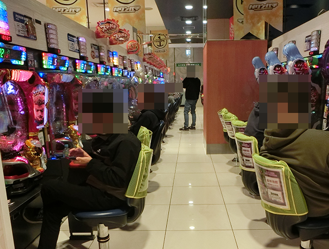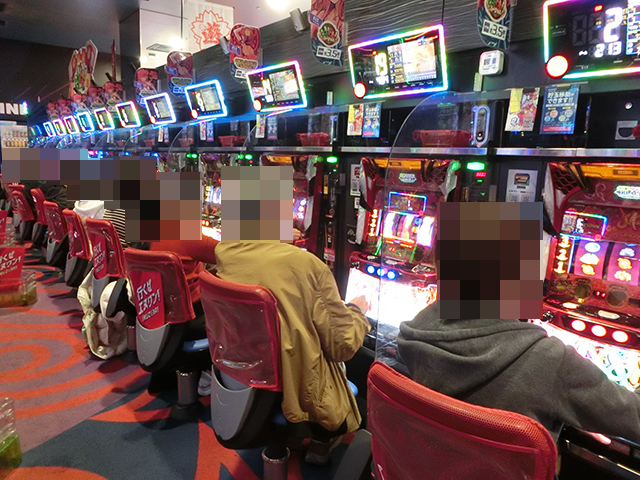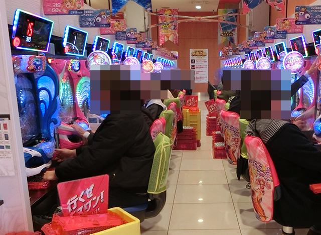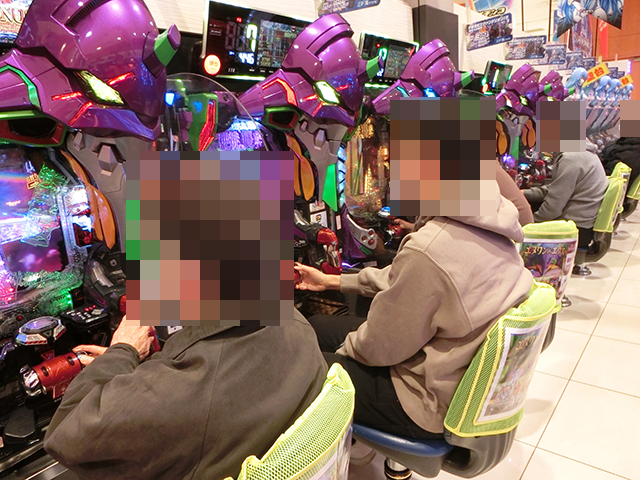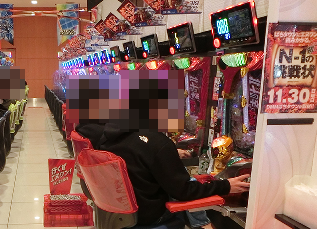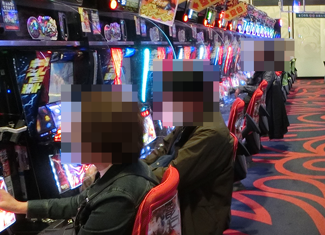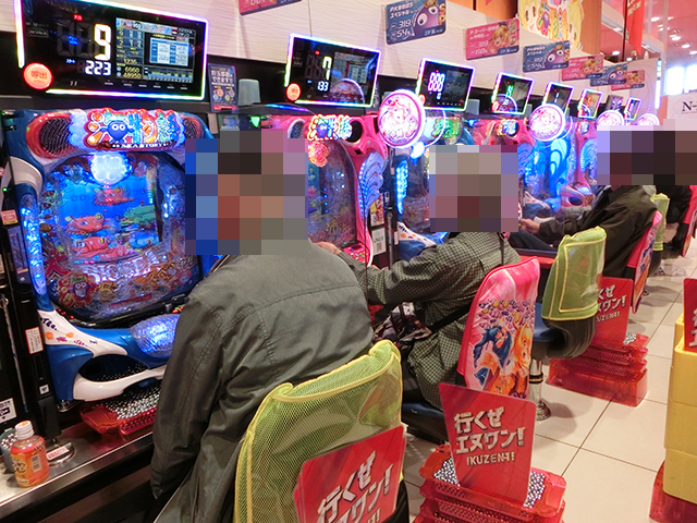 海物語シリーズや「P北斗の拳 暴凶星」などに、うれしそうに遊技をおこなっている姿があった。