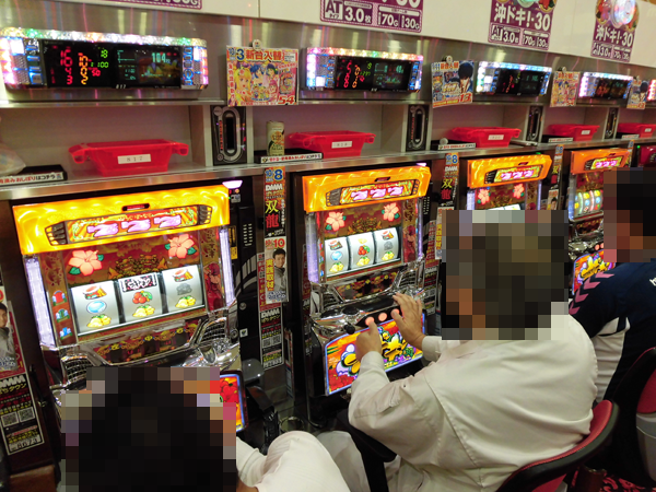 うれしそうに遊技をしているプレイヤーが多かった「沖ドキ!-30」。